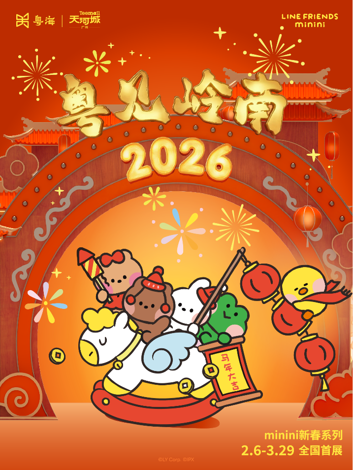 2026年2月6日至3月29日,风靡亚洲的萌趣IP minini将携其新春系列,于广州天河城举办「粤见岭南 新春游园」全国首展。