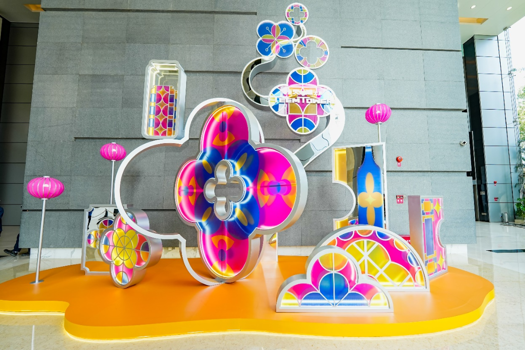 移步至粤海天河城大厦,展览呈现出别具一格的主打艺术格调。通过更具设计感的新春美陈,展现岭南文化在当代审美下的优雅表达,为市民提供一个品味传统与时尚碰撞的空间。