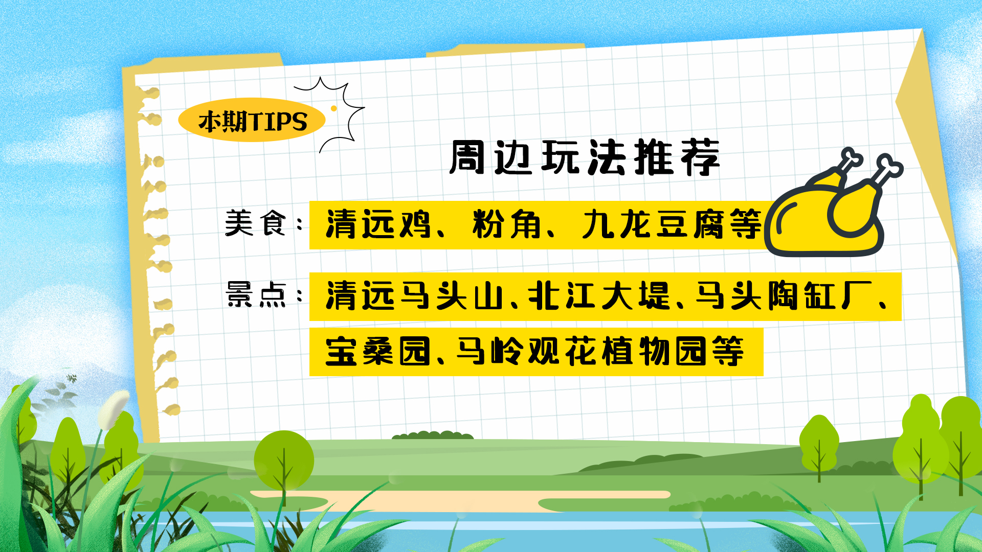景点:清远马头山、北江大堤、马头陶缸厂、宝桑园、马岭观花植物园等